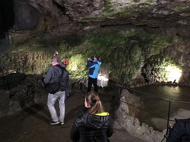 Po už spomínaných schodoch na záver prehliadky zídete úplne dole, do podzemia, pod nádvorie hradu, kde sa tiež nachádza skvost, tentokrát prírodný – malá travertínová jaskyňa s dvomi jazierkami.