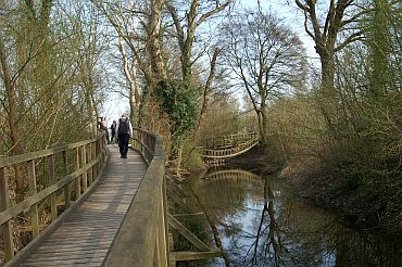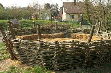 Foto 7 - vpravo: Zámocký ostrov je zároveň aj prírodným ihriskom pre deti, môžu sa tu hrať na vtáčie mláďatá v obrovskom hniezde, sliediť v tuneli z pospletaných vŕbových prútov, prechádzať cez prekážkovú dráhu, visiaci most či kolovú cestičku.