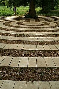 Za levanduľovými záhonmi nájdete labyrint, známu archetypálnu cestu do vlastného srdca. Ak si trpezlivo počkáte, kým odídu všetci turisti, môžete si ju prejsť v tichu, obklopení šumom lístia a spevom vtákov. Možno sa vám podarí nájsť vlastný duchovný stred a možno počas tejto „veľkej liturgie Prírody“ začujete v svojom vnútri tichý hlas, od ktorého čakáme, že nás bude viesť správnym smerom.
