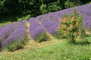 Najdôležitejšou bylinkou pannonhalmského opátstva je levanduľa. V Maďarsku sa darí, ak nie je príliš tuhá zima, dvom druhom levandule. S rozdielom dvoch týždňov kvitne najskôr tmavšia, hustejšia a nižšia francúzska odroda, ktorá dáva menej oleja ako jej anglická „sestra“, no je kvalitnejší. Levanduľa sa zberá v druhej polovici júna. Omamná vôňa vtedy zaplaví celé údolie. Zberači musia mať na ústach rúšky, aby vydržali pracovať. Bylinky sušia na čaj a spracovávajú na olej. Proces destilácie trvá pri levanduli 1,5 hodiny, šalvia potrebuje 2,5 hodiny, pretože obsahuje menej oleja. Z 500 kilogramov levandule je možné získať 2,5 litra oleja. Takže ak si niekde kúpite lacný olej z levandule (alebo šalvie či medovky), buďte si istí, že je pančovaný. V malej kláštornej predajni môžete kúpiť aj oleje, aj čaje, aj mydielka, dokonca aj sirupy a čokoládky s príchuťou byliniek, tie sa však vyrábajú inde. A aj „fialovú“ kuchársku knižku s receptami na často nečakané využitie levandule v kuchyni.