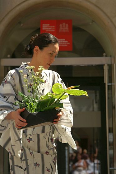 Pri tvorbe ikebany je dôležitý aj duchovný rozmer, základným predpokladom je ticho a vhodne upravené miesto, pretože toto je ten správny čas na ponorenie sa do seba a ocenenie krásy prírody i ubiehajúceho času. Cítime sa bližšie k prírode, ktorá sa stáva relaxom pre naše telo i dušu. Aj keď nádvorie Starej radnice nebolo práve najvhodnejším prostredím na tvorbu ikebany, nebolo tu ani ticho, ani pokoj špeciálneho ústrania, občas zavial vietor a teplota v tieni dosahovala 34 stupňov Celzia – aj tak vznikli nádherné kytice vo vysokej váze, nazývané nageire, v nízkej miske zvané moribana, zaujímavé bolo aj zelené aranžmán bez kvetov, len z vetvičiek a lístkov.