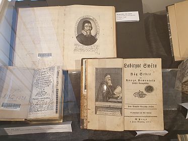 Pre návštevníkov výstavy je pripravený aj katalóg Komenského diel vydaných do roku 1800, ktoré sa nachádzajú vo fonde Univerzitnej knižnice. Zatiaľ posledný súpis komenián, ktorý pripravila roku 1992 Eva Frimmová, bol doplnený o knihy, ktoré v tom čase ešte neboli k dispozícii. Viaceré z nich sú tu tiež vystavené. Univerzitná knižnica vlastní náboženské práce Komenského, ktoré čitateľa vedú k viere v Boha, históriu českej Jednoty bratskej, rôzne vydania učebnice Brána jazykov otvorená a mimoriadne populárneho diela Orbis Pictus, pansofické spisy, knihu Zjavenia s proroctvami troch ľudí, hlavne však Mikuláša Drábika (ktorého práve za tieto proroctvá popravili v roku 1671 v Bratislave), a samozrejme jeho najznámejšie dielo Labyrint sveta a raj srdca. Precízna umelecká práca typografov z Komenského čias dodnes fascinuje. Odborníci si zvlášť cenia tie exempláre, ktoré vyšli ešte za Komenského života, keďže sa dá predpokladať, že autor ovplyvnil aj ich konečnú podobu. Univerzitná knižnica má vo fonde tridsať takýchto kníh. Unikátna je chváloreč na Karola Gustava Panegyricus Carolo Gustavo z roku 1656, toto vydanie sa zachovalo v tomto jedinom exemplári. Podobnou raritou je aj spis Versucheines Elementarbuches, ktorý vyšiel v Norimbergu 1770. Vo svete sú známe len dva exempláre tejto knihy.
