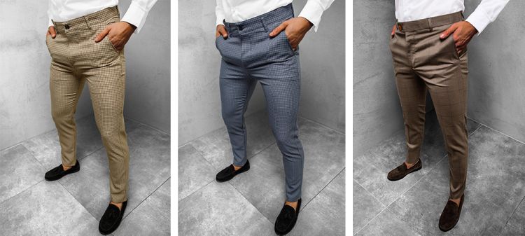 Elegantné nohavice sa samostatne nenosili. Boli súčasťou obleku a nosili sa len so sakom. Dominovala im čierna. Občas sa objavili tmavohnedé alebo tmavomodré nohavice. Farebnejšie možnosti neexistovali.