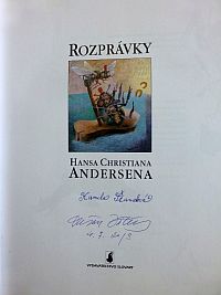 P. S. 2 Múzeum v Odense navštívil aj spevácky zbor Cantus z Bratislavy. Do knižnice múzea daroval knihu Andersenových rozprávok, ktorá vyšla v Slovarte (vpravo, i s podpismi ilustrátorov), a dostal vzácny dar - Andersenove rozprávky, ktoré svojimi kolážami ilustrovala princezná Margarét (dar vľavo v náručí Majky Štefánkovej z Cantusu, ktorá nám zaslala aktuálne foto z Andersenovho múzea, ďakujeme!).