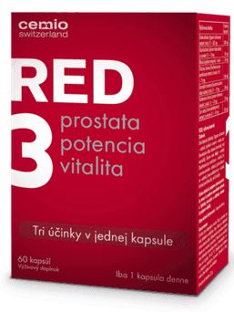 Ideálnym riešením pre mužov nad 40 rokov je Cemio RED3®. Prípravok novej generácie obsahuje unikátnu kombináciu klinicky overených extraktov – slivky africkej a ľanu siateho pre funkciu prostaty, macy peruánskej pre podporu mužskej potencie a sibírskeho ženšenu pre podporu vitality a celkovej kondície. Naviac je obohatený o bylinné extrakty z kustovnice čínskej, sóje fazuľovej a gumojilmu brestového. Tie majú tisícročnú tradíciu v oblasti podpory mužnosti hlavne v ázijských krajinách.