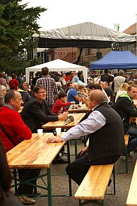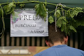 Do prednášky pána primára zaznela zvonku dychovka. Pod oknami kúpeľov, priamo na námestí práve začínali oslavy vinobrania. Krojovaný sprievod prinášal starostke obrovský strapec hrozna: „Symbol práce šeckých hospodárú, kerí sa starajú, aby jsme mjeli šeckého dostatok. Vitajte šeci!“ Všetci, teda domáci i kúpeľní hostia, sa špacírovali pomedzi stánky, tancovali na námestí, kupovali deťom balóniky a cukrovú vatu, sebe nové hrnčeky, obrázky Panenky Márie, bižutériu – a najmä burčiak.