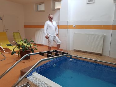 Cvičenie aqua-fit sa koná v bazéne s vodou, ktorá je slaná spolovice tak, ako sú slané naše slzy, neštípe, zároveň je antiseptická. Vedie ich Ondrej Majoroš, ktorý predtým pôsobil v Číži a v Bardejove. Jeho trpezlivé a citlivé „oddýchnite si, ak nevládzete, opatrne, radšej pomalšie, podlaha môže byť mokrá a klzká, počkajte, pomôžem vám“, príjemne prekvapilo. Každý, kto už bol niekedy v kúpeľoch, vie, že personál môže byť milý, menej milý, a aj vôbec nie milý. „Každá práca má svoje, v škole nás učili len odborné veci, etický prístup práce so staršími a chorými ľuďmi nám prednášali až na neurorehabilitačnej stáži v českých Klimkoviciach,“ vysvetlil. I keď byť chápavý a pozorný, to je možno čosi, čo sa naučiť ani nedá, čo musí byť človeku proste dané.
